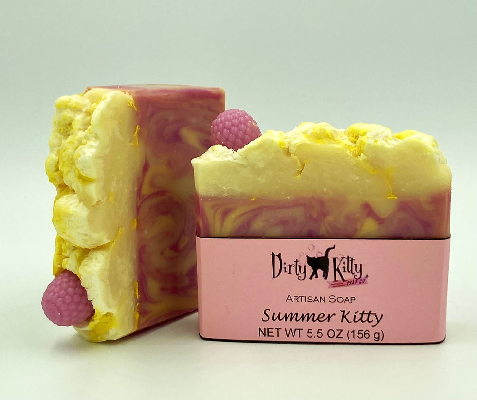 Our bar soap is made using oils like coconut, olive, sunflower, safflower, castor, rice bran, lard, and shea butter. We also use milks, aloe vera, micas, biodegradable glitter, and silk, just to name a few. We scent the soap using essential fragrance oils.
